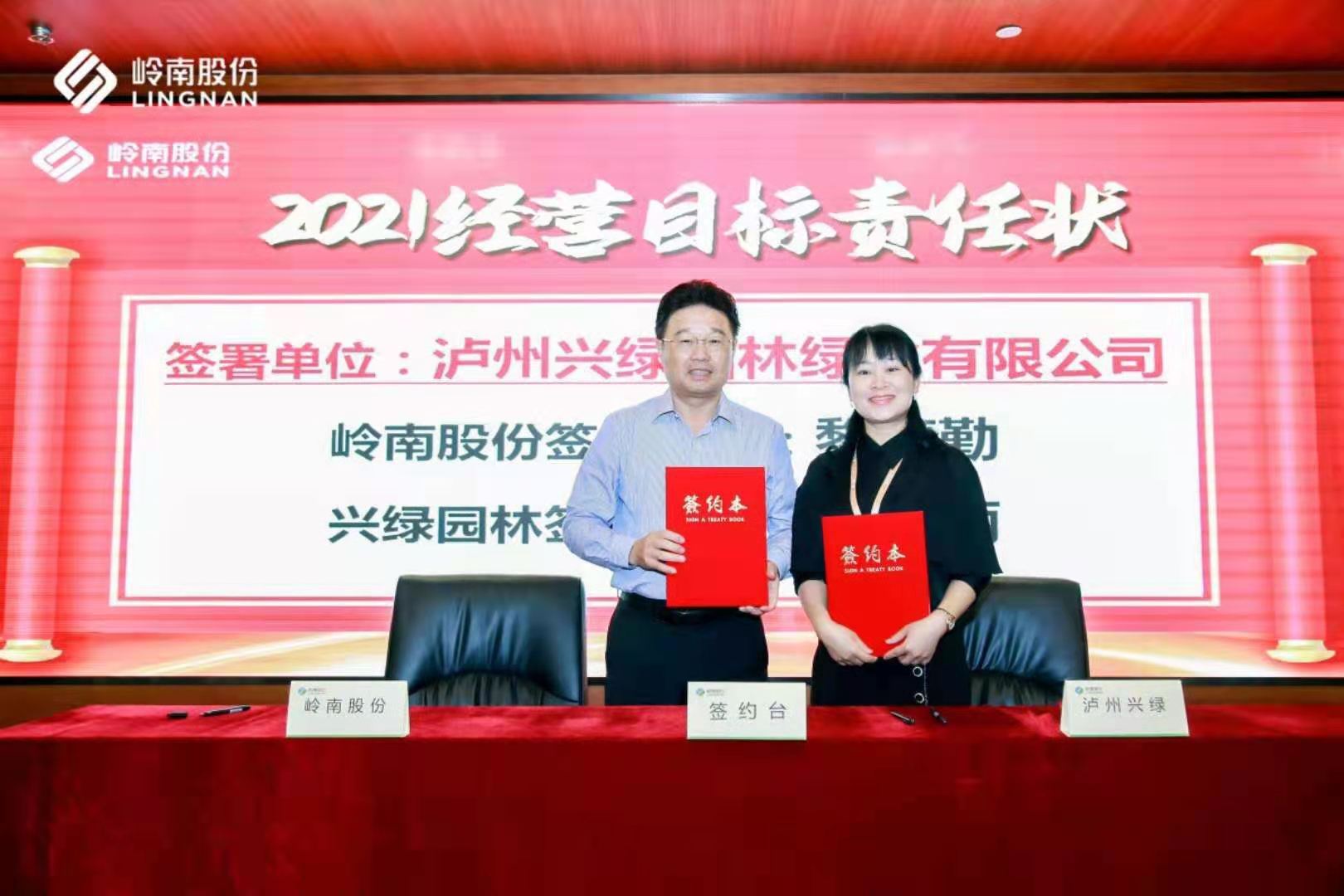 近日,嶺南生態(tài)文旅股份有限公司授予瀘州城投集團(tuán)旗下興綠園林公司優(yōu)秀合作商稱號(hào),并簽訂了2021年經(jīng)營(yíng)目標(biāo)責(zé)任狀。